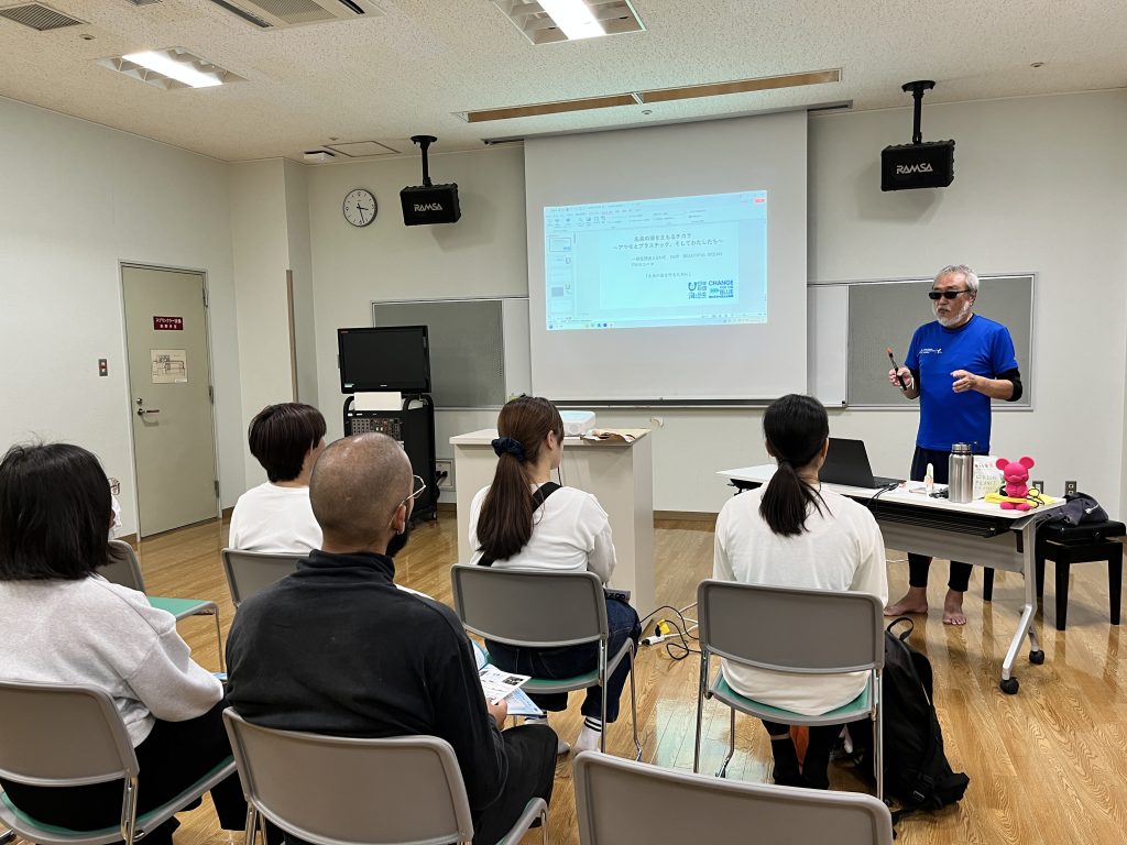 留学生の方も参加していただいての海ごみ出張授業。平塚や伊勢原など遠くから来ていただき、ありがとうございました!